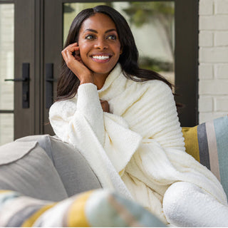 Softies Ultra-Marshmallow Wrap Cardigan with Exaggerated Collar in Coco