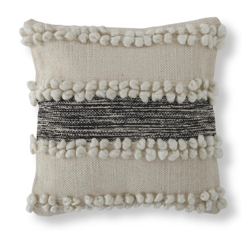 Handcrafted with textured yarn dots, this square pillow brings artisanal charm to any room. The cream and black color palette complements both modern and eclectic interiors, while the tactile surface invites touch and adds visual depth. Perfect for layering on sofas, beds, or accent chairs, this bohemian-inspired piece celebrates natural materials and thoughtful design. A versatile addition that supports your personal style.