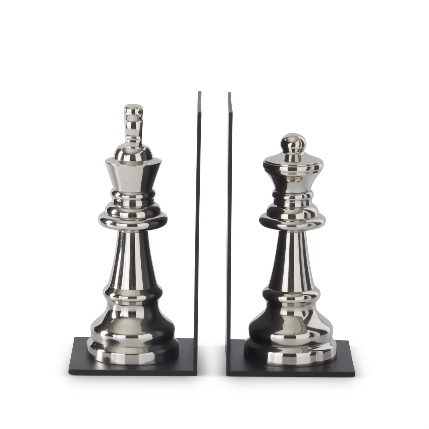 Upgrade your bookshelf with our stylish Silver Metal & Black Chess Bookend Set. Crafted with intricate detail, the king and queen figures add a touch of elegance to any room. Keep your books organized and add a unique touch to your home with this must-have set.