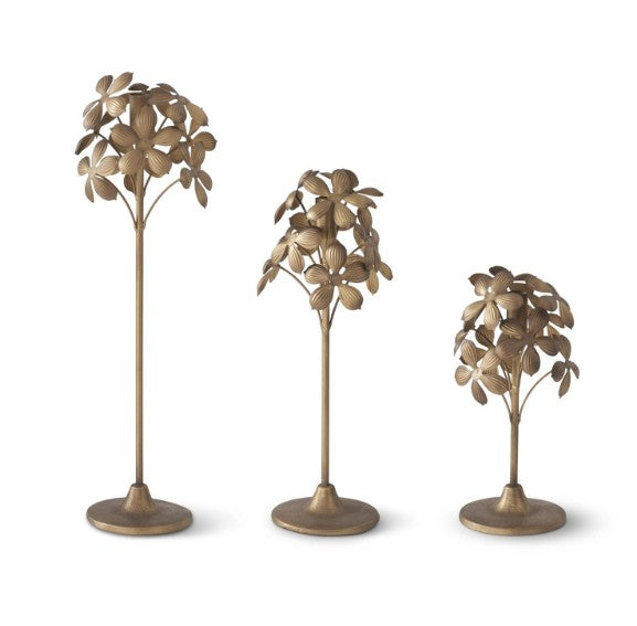 Elevate your table setting with this striking gold metal flower taper candleholder. Each piece features a distinctive floral-inspired design that brings organic elegance to any room. The assorted collection offers varied silhouettes, ensuring no two displays are identical. Perfect for creating a curated, gallery-like aesthetic that feels both refined and welcoming. Mix and match across your home to establish a cohesive, artfully layered look that celebrates individuality.
