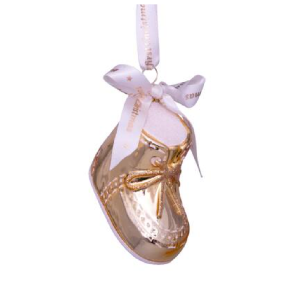 Celebrate the season with the Baby's First Christmas Glass Ornament by Vondels. Each ornament is mouth-blown and hand-painted, making every piece truly one of a kind. Crafted with care and eco-friendly materials, it’s a beautiful, planet-conscious addition to your holiday decor. Perfect for spreading warmth and joy this Christmas.