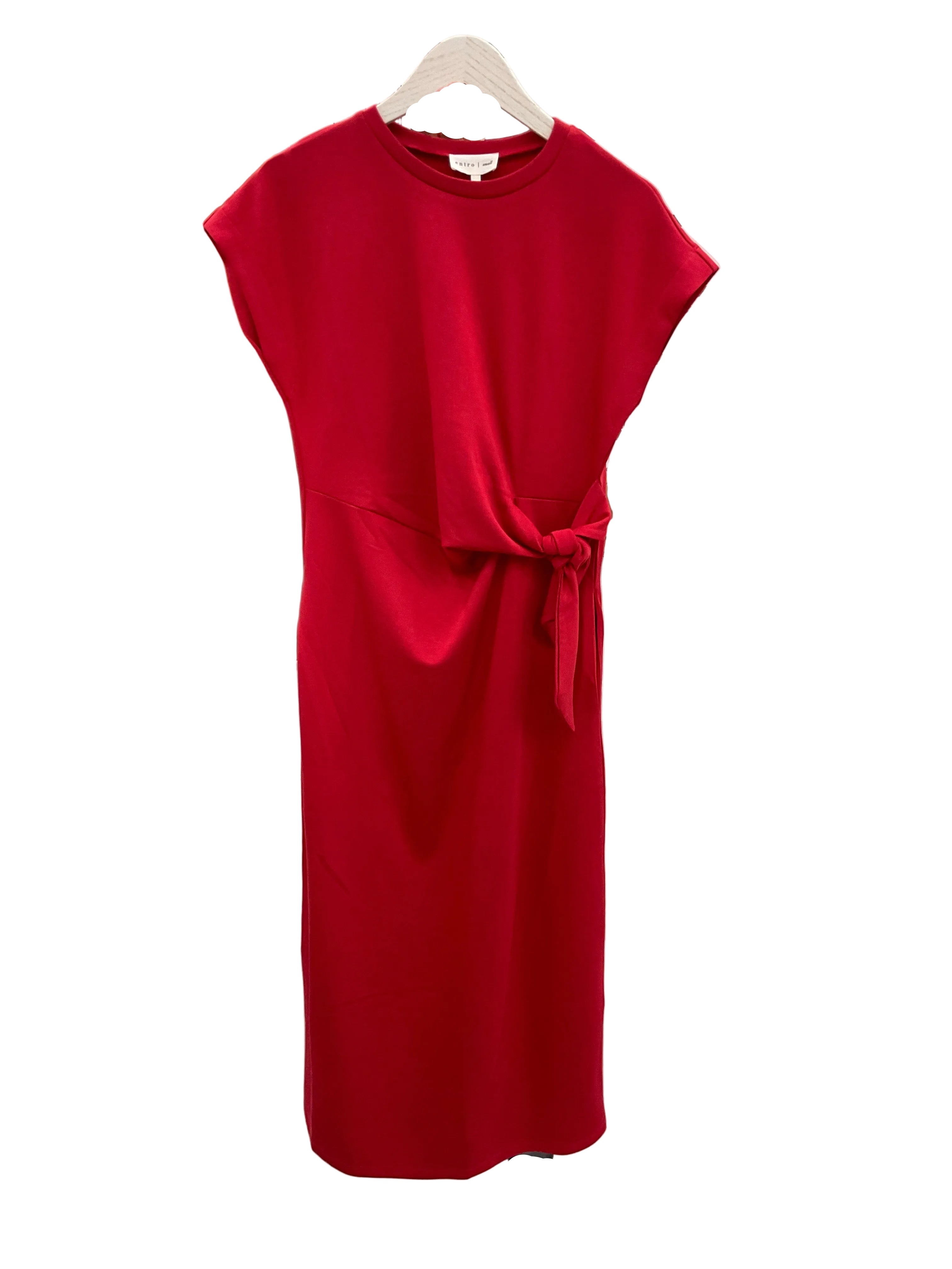 Effortless elegance meets practical comfort in this striking red dress. The classic crew neckline and short sleeves offer timeless appeal, while functional side pockets add everyday convenience. An adjustable tie waist lets you customize the fit to flatter your silhouette, making this versatile piece perfect for work, weekend outings, or casual gatherings. A wardrobe essential that combines style with wearability.