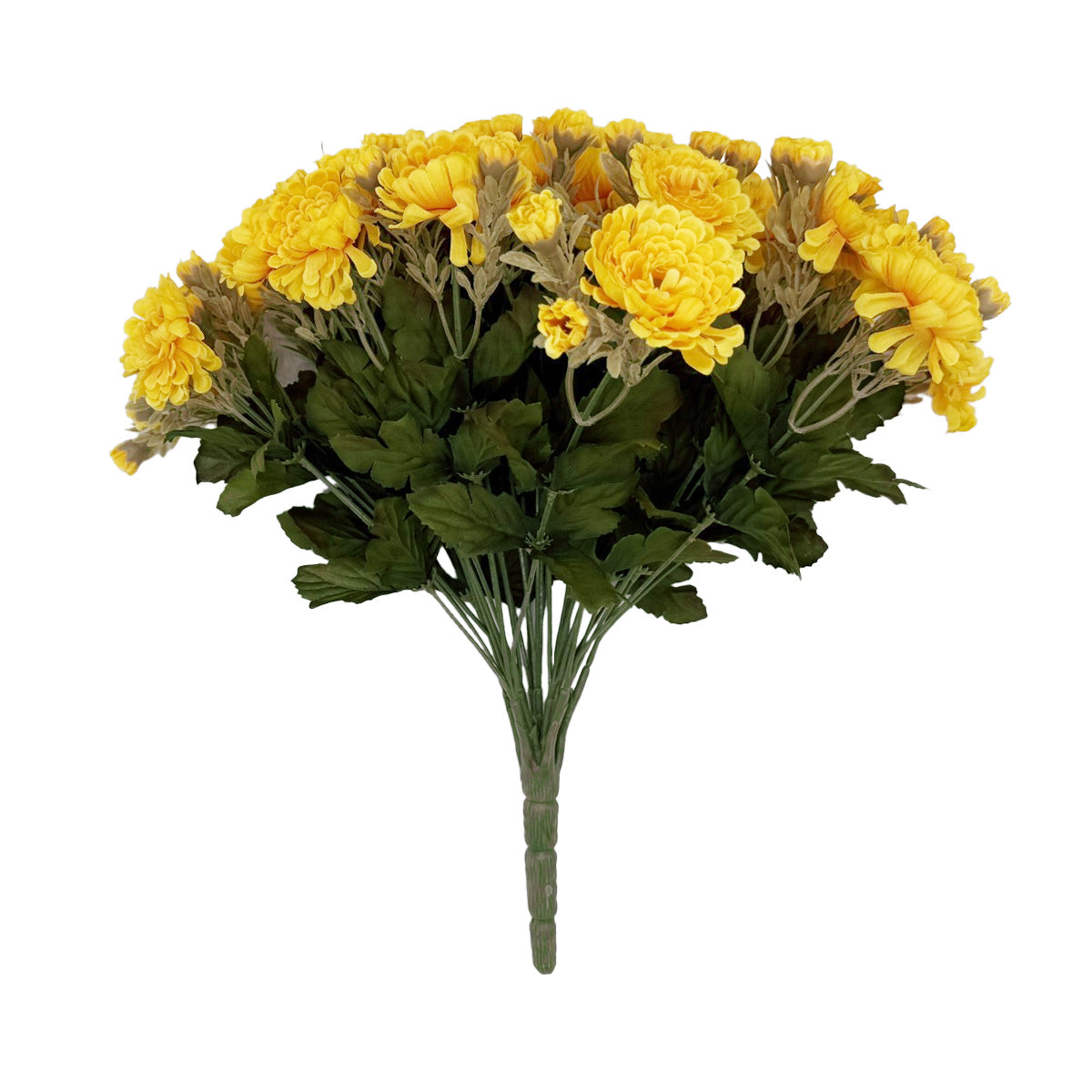 • Add a warm touch to your space with this 16" Yellow Mum. Its rich, deep color brings a cozy and inviting feel, perfect for brightening any room or occasion.