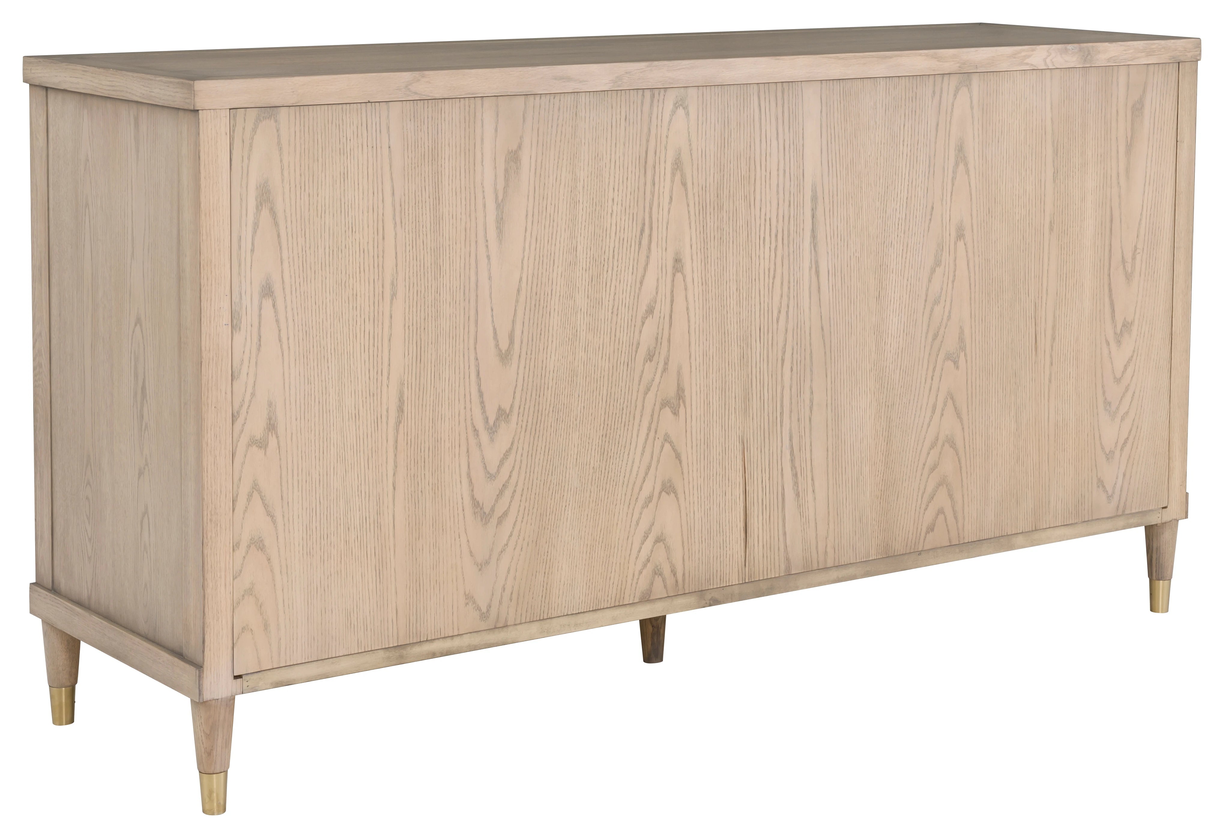 Crafted of red oak solids and veneers, our Everett Collection features rounded tambour panels and figured red oak veneered surfaces. Everett case goods are accented with brushed brass hardware and ferrules. Stocked in Biscotti.