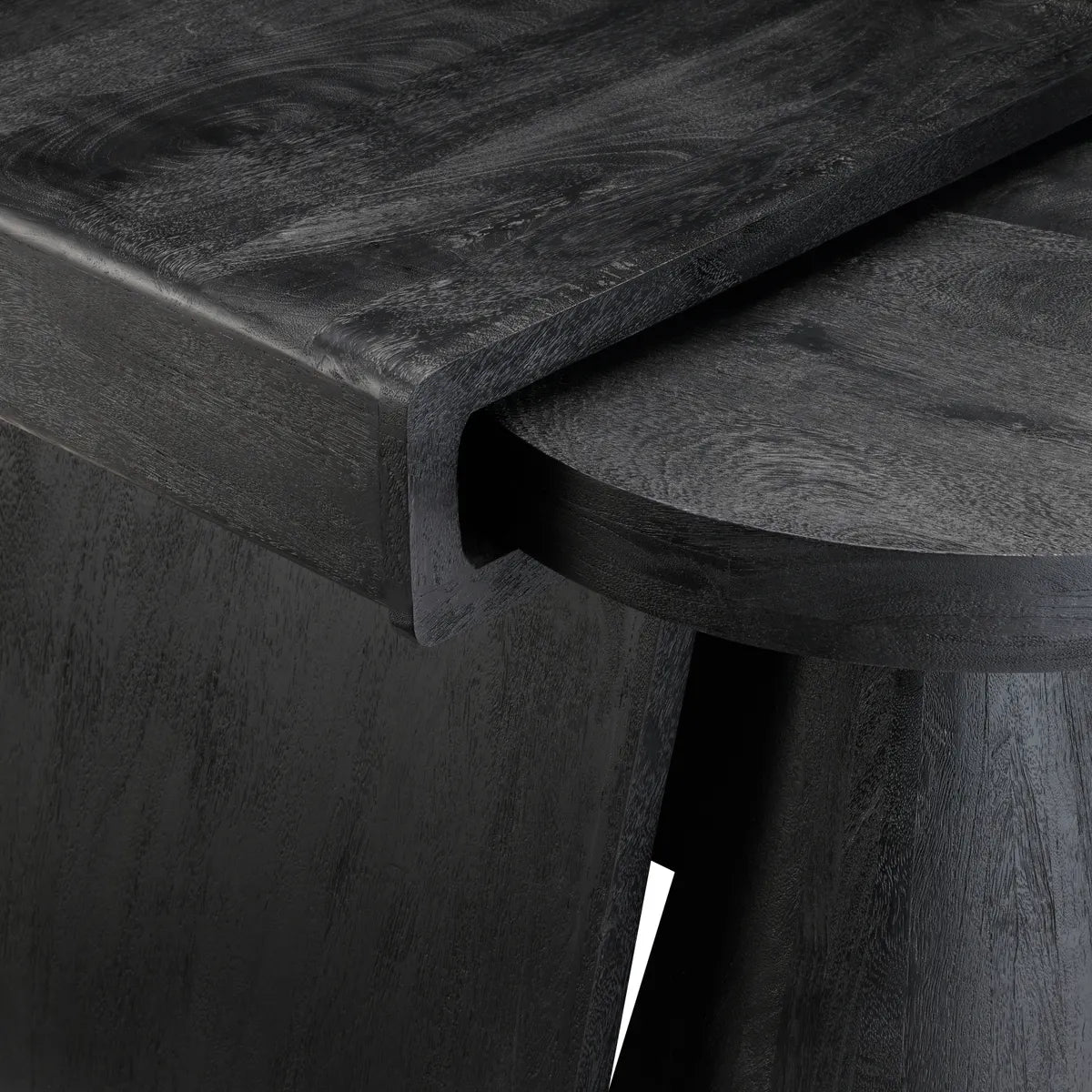 Keppler Nesting Tables in Black bring functional elegance to any room with this thoughtfully designed nesting table set. The black stain highlights the natural wood grain while the unique nesting design maximizes your space—nest them together when you need room to move or spread them out to create flexible surfaces for display and everyday use. Perfect for living rooms, bedrooms, or home offices, these tables adapt to your lifestyle while adding warmth and character to your décor.