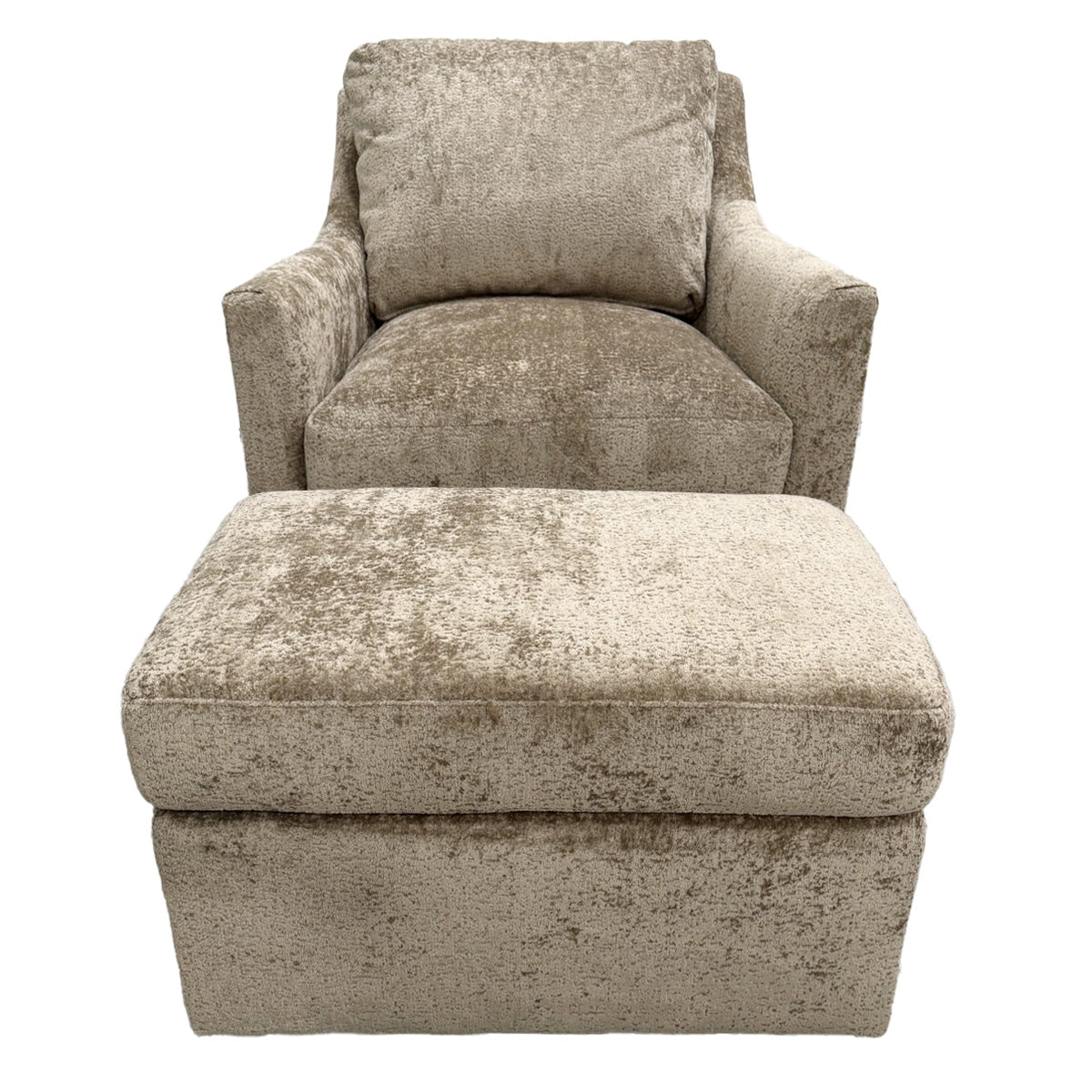 The Libby Langdon Teddi Swivel Chair, made with beech solids, offers durability and style. Its sleek design makes it a perfect addition to any room, while its sturdy construction ensures long-lasting use. Upgrade your home with this versatile and chic piece from Fairfield Chair. Available in store as pictured or you can order choosing from a multitude of fabrics.