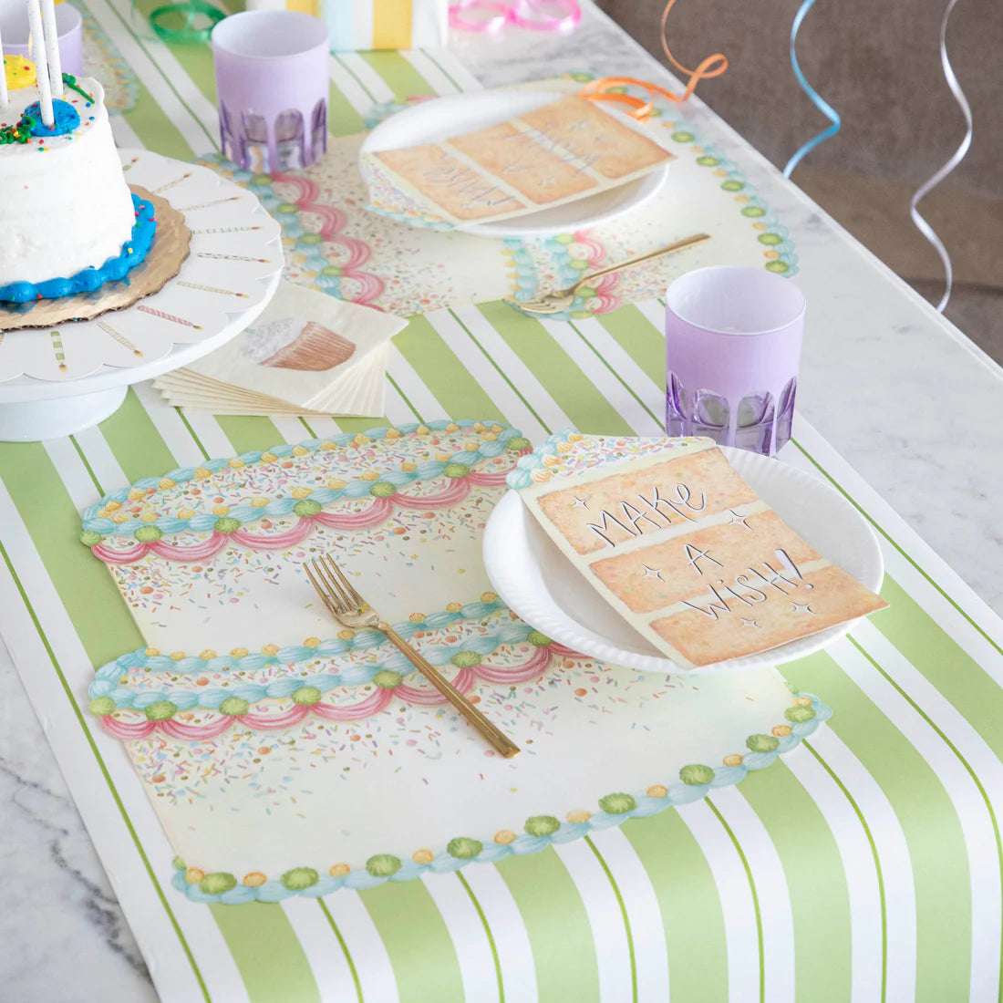 Our Green Awning Stripe Runner is perfect for year round celebrations! The multi shades of green set a beautiful backdrop for spring gatherings, holiday celebrations and everyday use.