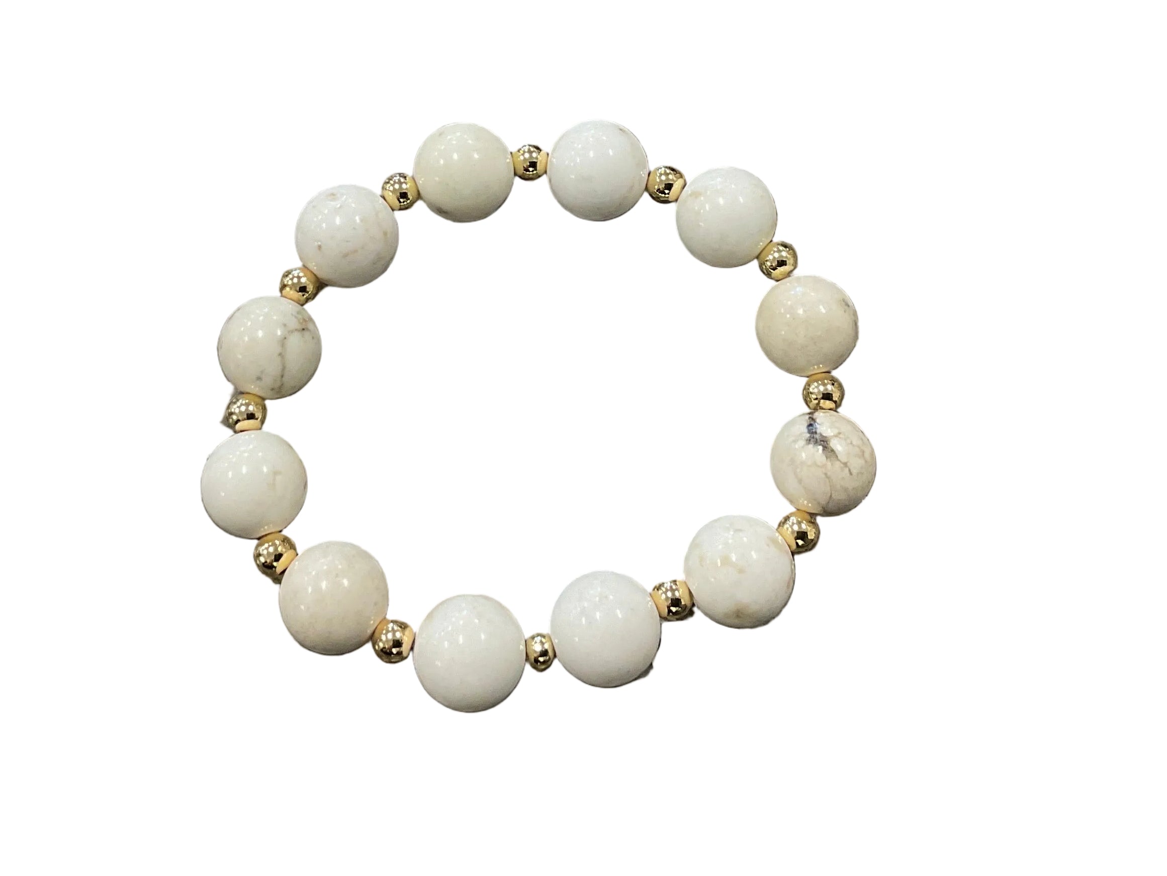 Elegant white beads strung with delicate gold spacers create a timeless bracelet perfect for everyday wear or layering. The soft, neutral palette pairs effortlessly with any outfit, while the warm gold accents add a touch of sophistication. A meaningful piece that celebrates the special bond it represents, this bracelet brings understated luxury to your wrist.