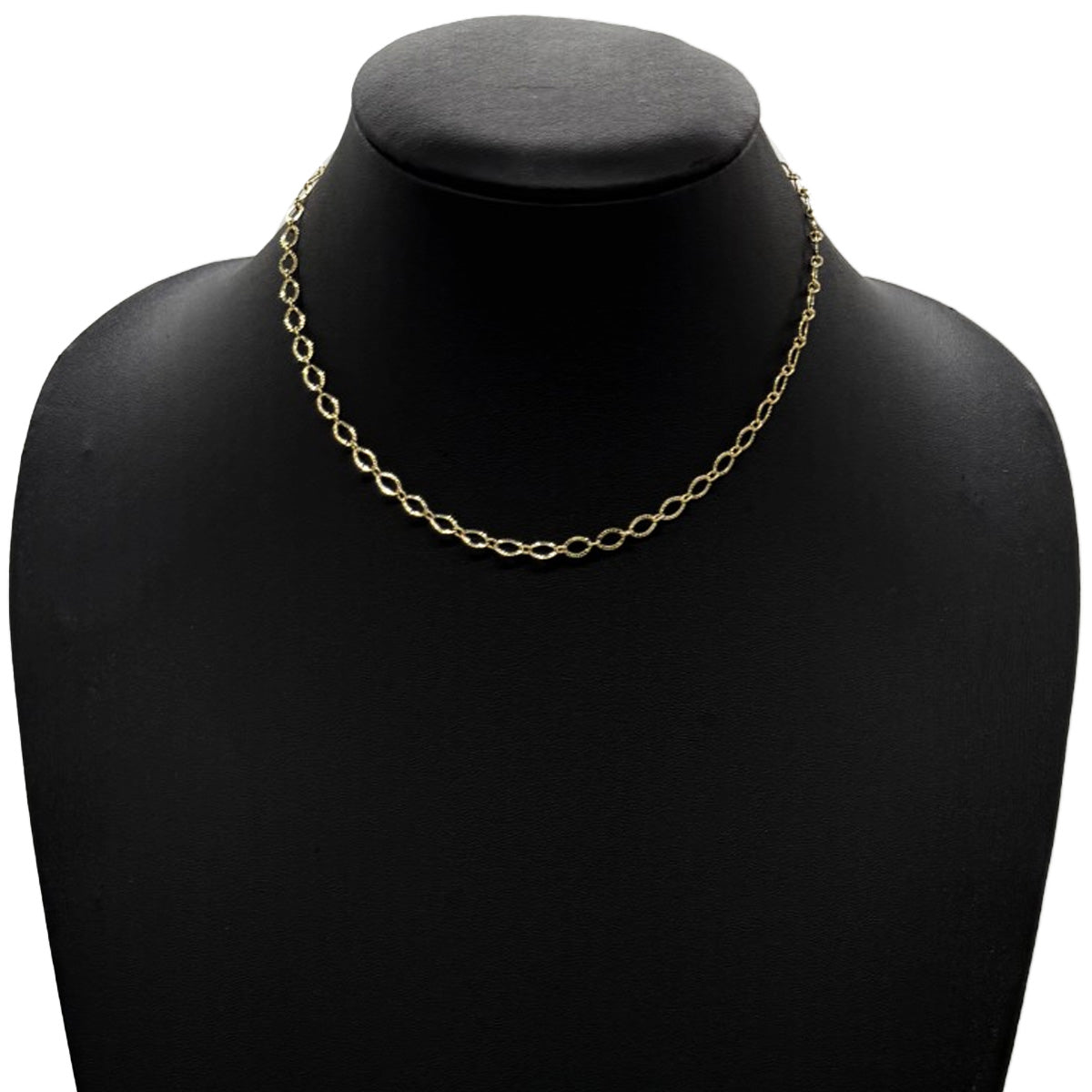 • This beautiful 15" 16K gold etched chain is a stunning addition to your "wear everyday" stack! We are in love with this necklace! Long-wearing and gorgeous! 2" of extension chain added to design.