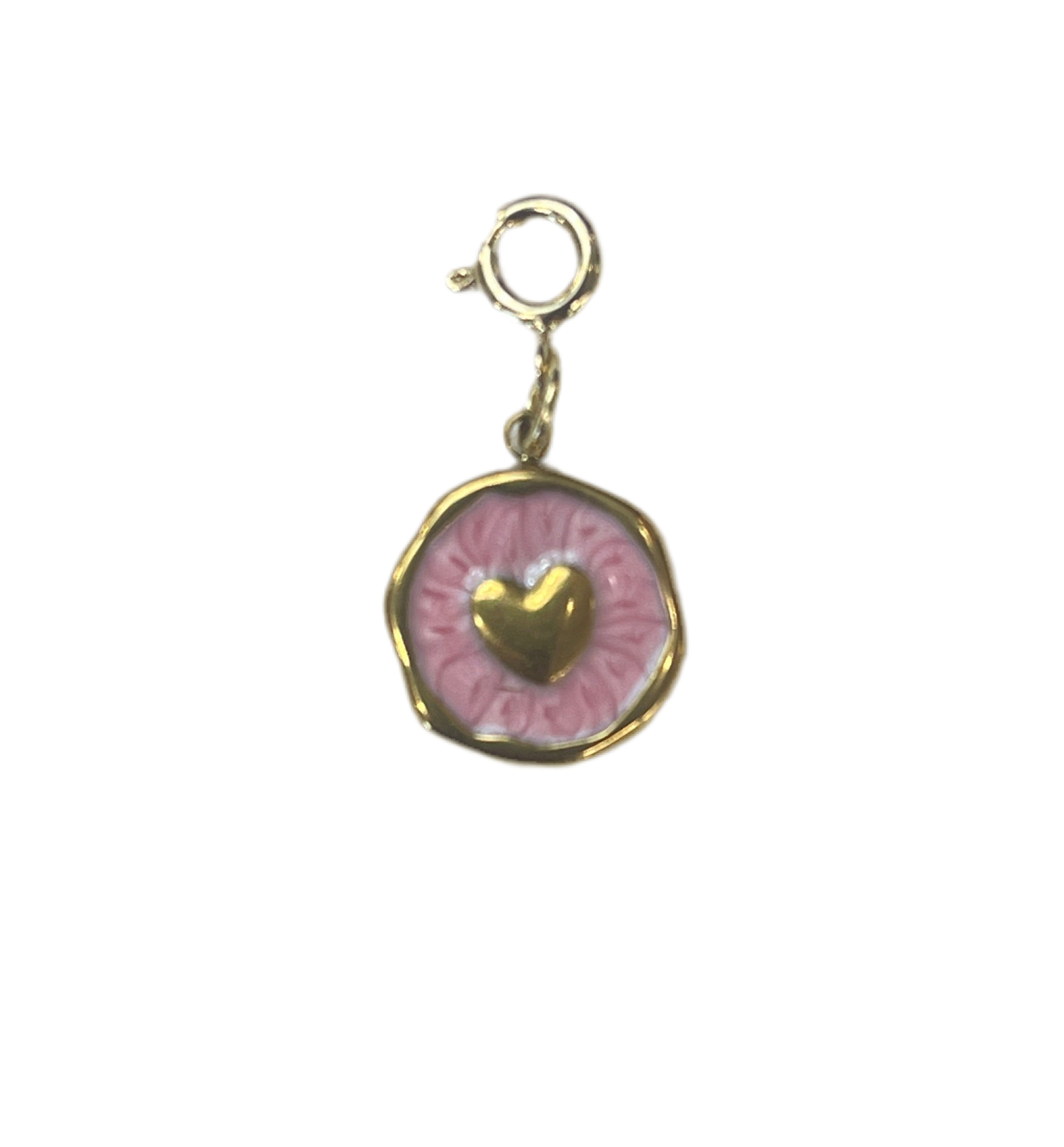 The Gold Heart on Pink Circle Clip Charm adds a delicate touch to your favorite bracelet or necklace. Featuring a smooth, heart-shaped design detailed with lustrous pearls, it offers a timeless elegance that complements any style. Easy to attach, this charm lets you personalize your jewelry while expressing warmth and affection. Perfect for gifting or keeping as a meaningful keepsake that reminds you of love and connection.