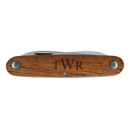A pocket knife is a must-have tool, both on the job and off. Great for around the house, in the garage, and out in the wild. Personalize with a name, business, or sentiment. This pocket knife features a burl wood handle and 3.25" locking blade.