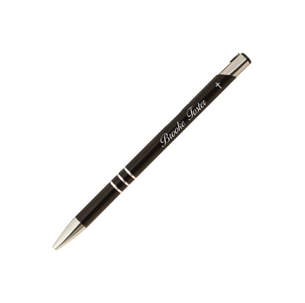 This slick metal pen is a marriage of function and beauty. Engraved with your name or personal message it will quickly become one of your favorite pens to use and show off!