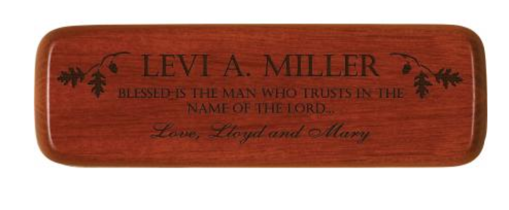 Elegant as it is practical, this rosewood pen and pencil set is of sturdy construction and classic appeal. The rosewood box contains a pen and mechanical pencil made of matching beauty and style. With room for personalization on the box as well as the pen and pencil, this set makes a great gift for birthdays, graduations, Father's Day, Christmas, or pastor appreciation. Items are blank and can be customized with whatever message you would like, not just with featured designs. In the order comments box at checkout please let us know what you would like engraved on the item, as well as any style notes. We will then create a proof and email it to you for approval before printing the item.
