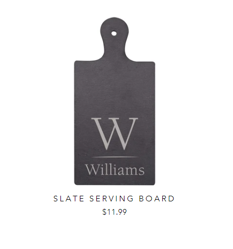 • Crafted from Natural Slate this serving board has a natural look and texture and can be personalized .