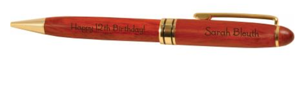 This classic, wood ballpoint pen is personalized with the name of your choice, for a lasting keepsake gift. Includes gold trim, pocket clip, and twist-open mechanism. Items are blank and can be customized with whatever message you would like, not just with featured designs. In the order comments box at checkout please let us know what you would like engraved on the item, as well as any style notes. We will then create a proof and email it to you for approval before printing the item.