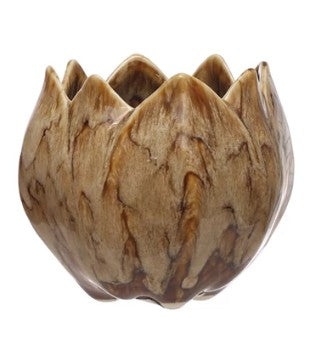 Bring organic beauty to your space with this handcrafted stoneware planter. Each piece features a distinctive flower silhouette and reactive glaze finish that creates one-of-a-kind surface variations in rich brown or warm beige with brown tones. No two planters are identical, making this a truly personal addition to your home decor. Perfect for displaying your favorite plants while adding artisanal charm to shelves, windowsills, or garden spaces.