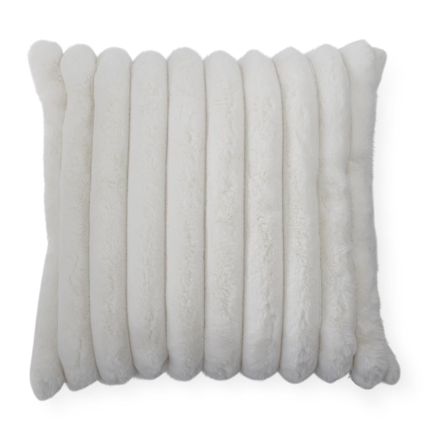 This 24-inch cream faux fur pillow adds a cozy, stylish touch to any room. Made from 100% polyester, it offers soft comfort and easy care, making it perfect for relaxing or enhancing your home decor. Its neutral cream color blends seamlessly with various styles, providing warmth and inviting texture to your living space.