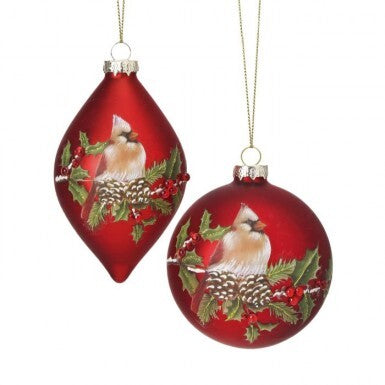 Add a touch of nature and vibrant color to your holiday decor with our Red Cardinal with Holly Glass Ornaments. Each ornament features a unique and charming design that will bring joy to your home during the holiday season. A must-have addition for any Christmas tree.