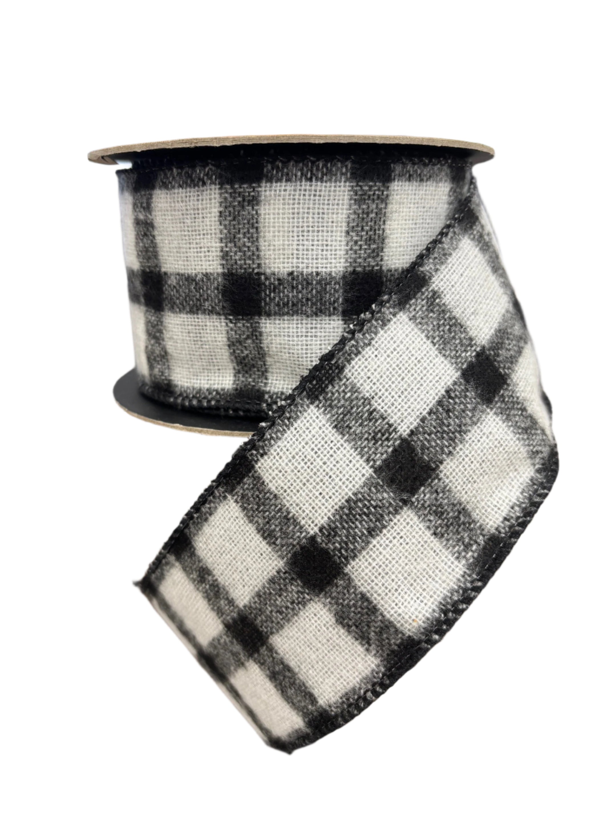 Black & White Check Wool Wired Ribbon 2.5" SOLD BY THE FOOT