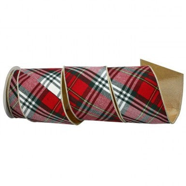 Red, Green, & White Cotton Plaid Ribbon Sold by the Foot