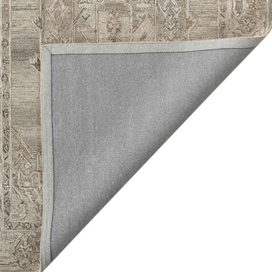 This soft, natural area rug has all the comfort and beauty you need in a handmade piece of floor art. Hand-tufted in India with blended New Zealand wool and viscose, this sophisticated rug has a luxurious feel, and its neutral color blends well with any room décor. This alluring area rug will add value and become the perfect aesthetic for your space in an instant.
