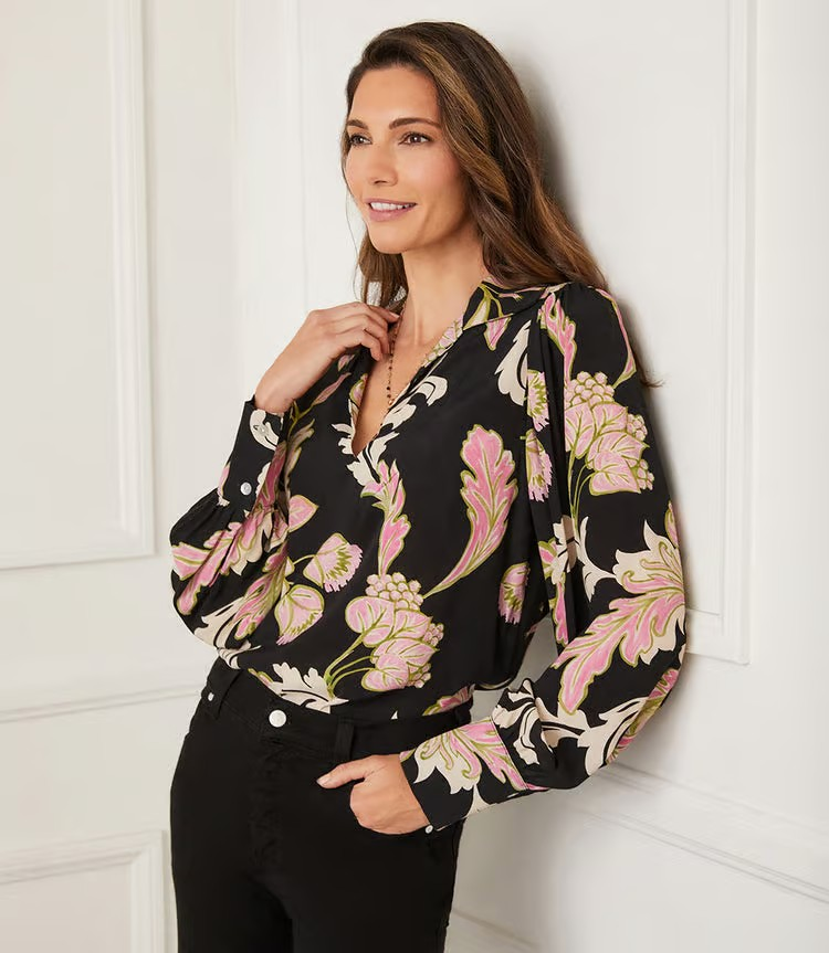 • Crafted from lightweight crepe material, this Blouson V-neck Top features a chic chalk floral print that effortlessly elevates any outfit. Pair it with your favorite jeans or trousers for a stylish everyday look or complete the ensemble with the matching Bias Cut Midi Skirt for a polished and put-together appearance. The possibilities are endless with this versatile and flattering top.