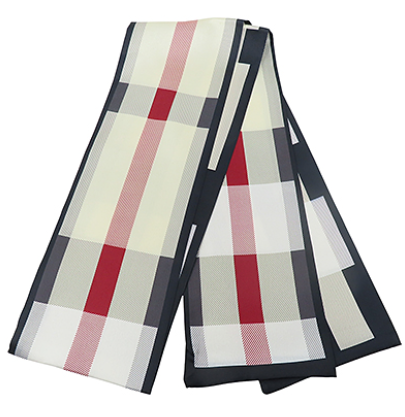 Elevate your everyday look with this versatile narrow scarf, featuring a timeless plaid pattern in ivory and cream tones accented with striking red and black edges. At 5" x 58", it's the perfect length for draping, tying, or accessorizing your favorite outfits. Whether you're layering over a coat, adding polish to a dress, or styling it as a headwrap, this piece brings effortless sophistication to any ensemble.