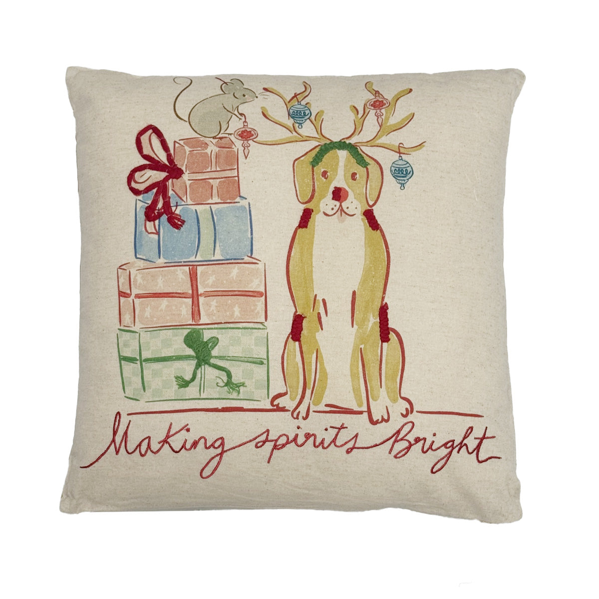 Add a touch of whimsy to your space with this 15" square cotton and linen pillow featuring a charming dog and mouse print. Its breathable fabric ensures comfort while the playful design brings warmth and cheer to any room, making it a delightful seasonal accent you'll love.