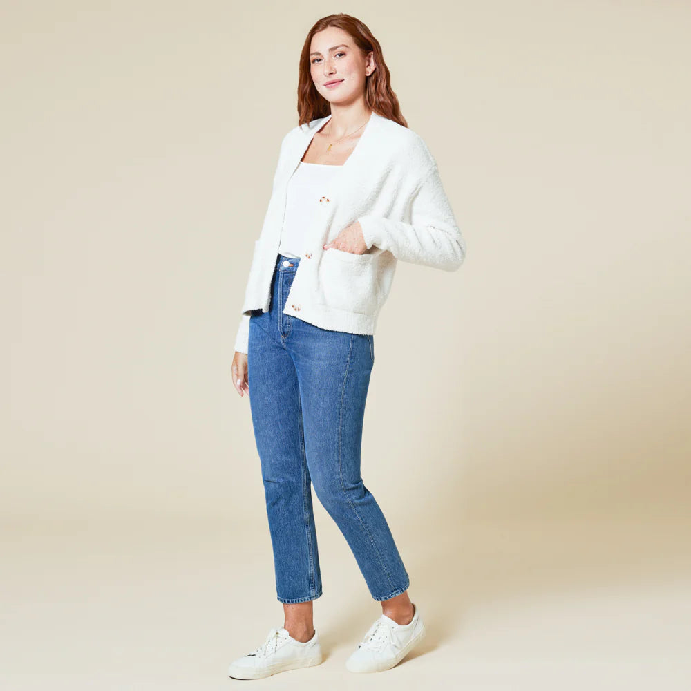 Complement your everyday look with the Solid Marshmallow Crop Cardigan, sure to be a forever favorite. It features a tastefully cropped design with three dye-to-match pearl buttons for a polished finish. Hitting right at the top of the hip, it offers an oversized and forgiving fit that flatters every figure.