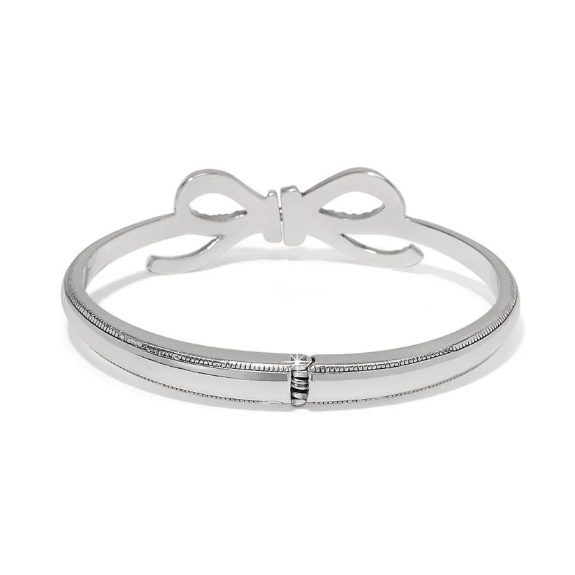 The Illumina Bow Bangle is shimmery and delicate with a bit of whimsy. It truly has the characteristics of a real ribbon delicately knotted. Glistening with pave stones throughout, it looks like fine jewelry and appears to have movement, like a real ribbon. It is so delicate you could wear it with a simple white tee and jeans.