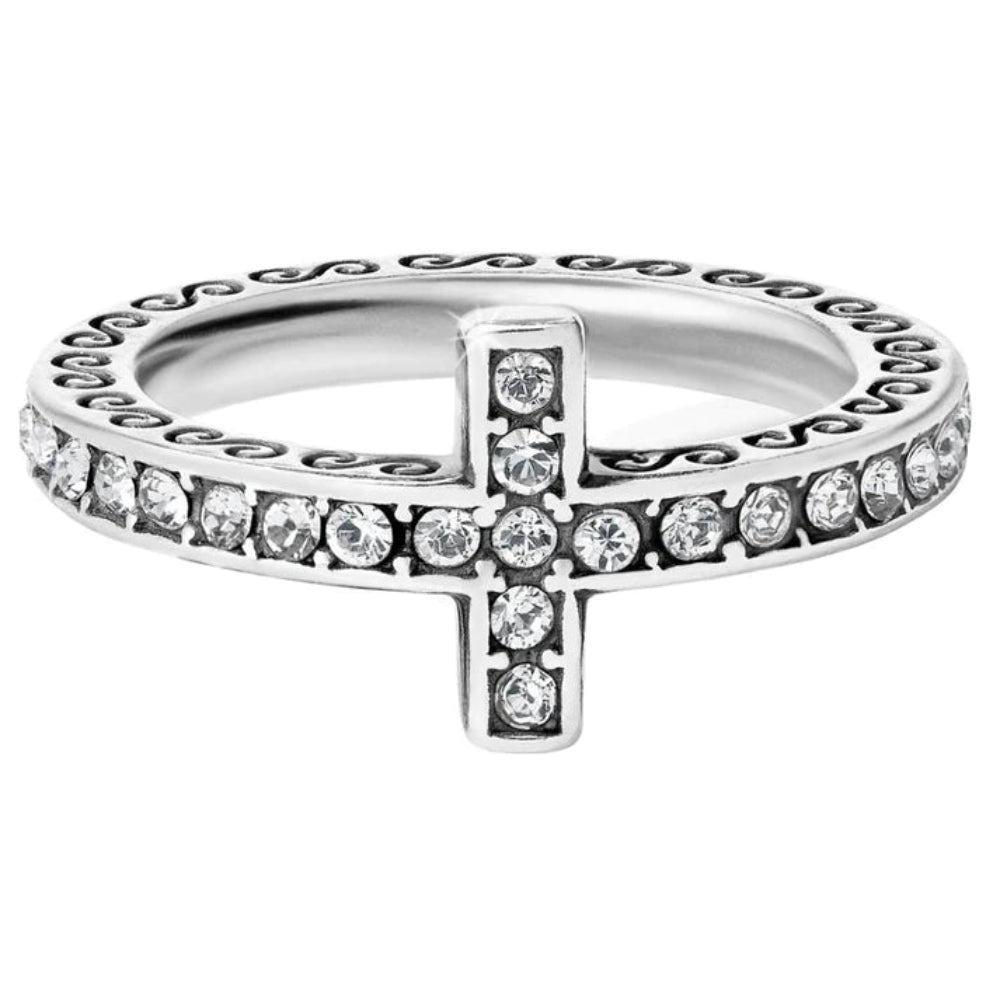 Inspired by the trail of a shooting star, the Starry Night Cross ring is a marvel of design ingenuity. The cross becomes part of the band, studded by fine quality crystals and etched with Brighton scroll.