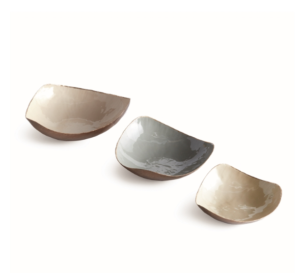 This charming set of hand-painted decorative bowls are clean and modern. With a gold edge detail, and coordinating soft neutral hues, they add a pop of color to kitchen island, side table or ottoman. A lovely catch-all for jewelry, keys or spare change.