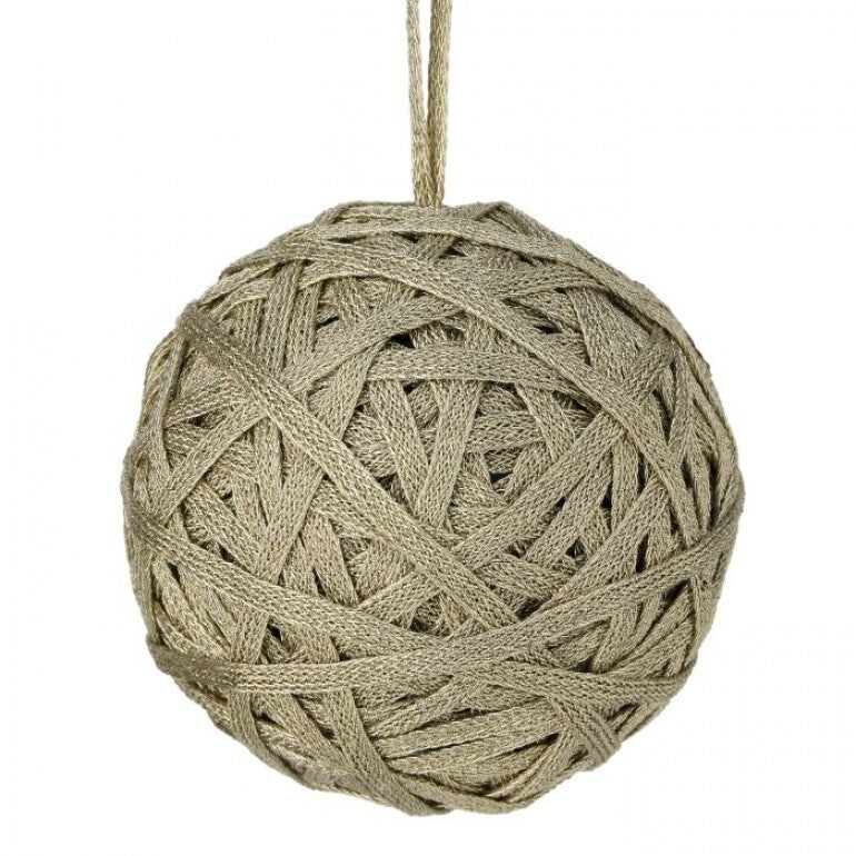 Add a touch of sparkle to your holiday decor with our Champagne Metallic Thread Ball Ornament. The combination of natural materials and subtle shimmer adds a classy and elegant touch to any tree or festive display. Elevate your decorating game this season with this unique and beautiful ornament.
