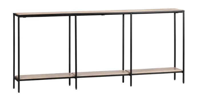 Introducing the Crosby Travertine Console Table by Crestview Collection, a captivating blend of functionality and contemporary-inspired elements. This two-tier design features a matte black, metal frame with inlayed shelf panels made from natural travertine. This material boasts a soft cream/ivory finish with invites an air of tranquility. Beneath the marble's smooth surface lies an array of organic depth and texture that is further accentuated by its rectangular shape, allowing its raw beauty to be seen from every angle.