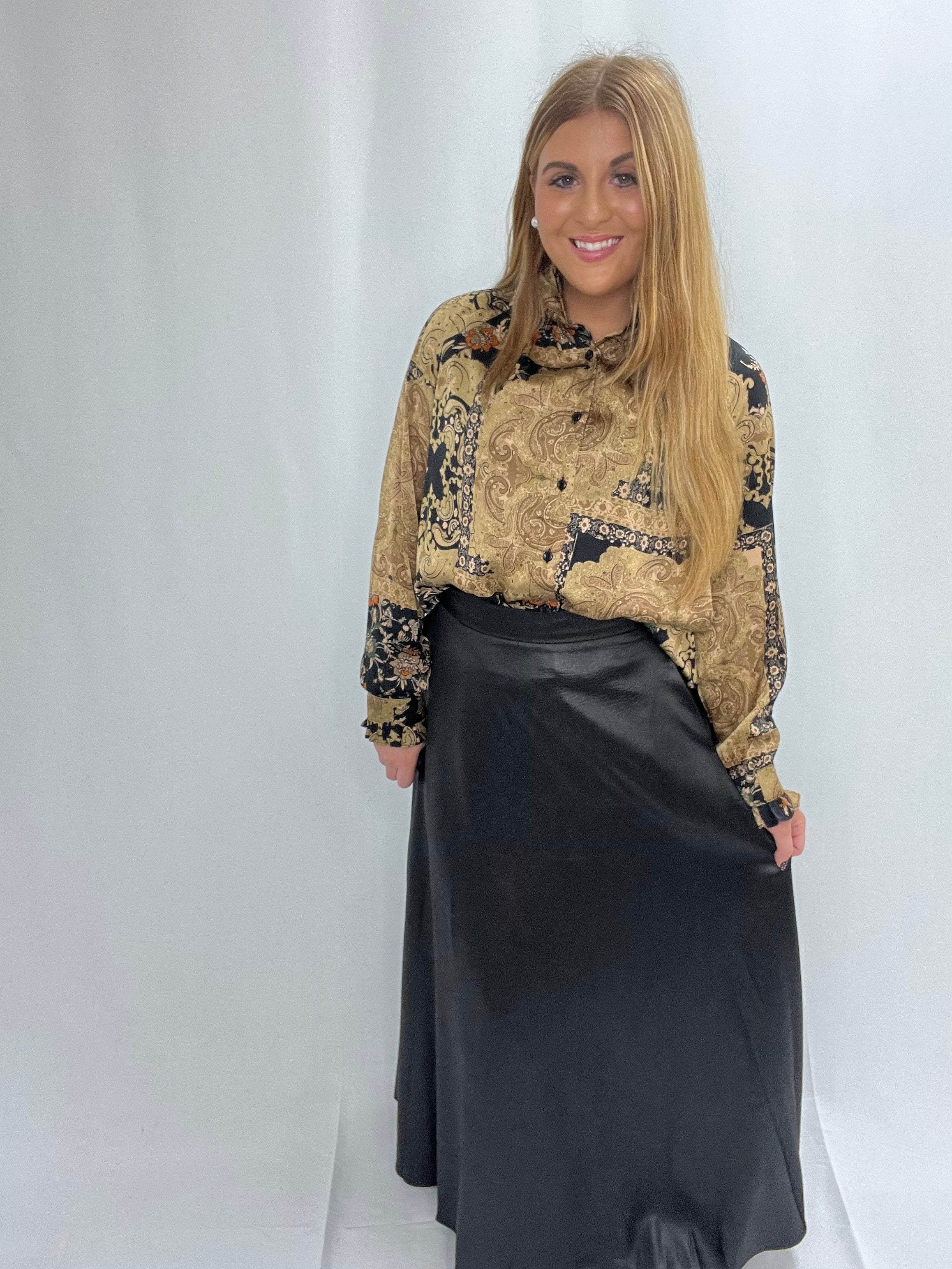 • The Depth Skirt in Black offers a comfortable fit with its elastic waistband at the back and a convenient side zipper for easy wear. This long, lined skirt made from 97% polyester and 3% elastane provides both elegance and flexibility, ensuring you feel confident and supported throughout your day. Its classic design pairs well with various outfits, making it a versatile addition to your wardrobe.