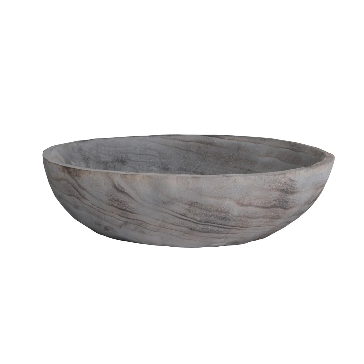The Everdeen Bowl brings warmth and character to any room with its beautifully crafted wood construction and soft grey finish. This rustic decorative piece celebrates natural grain patterns and artisanal charm, making it perfect for displaying on shelves, tables, or mantels. Whether you're styling a cozy living space or adding texture to your décor, this versatile bowl complements both modern and traditional interiors.