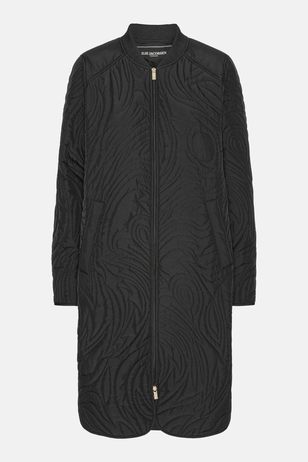 This longline jacket has a beautiful, quilted pattern and cozy details.