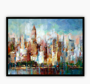 Capture the uplifting beauty of a vibrant city skyline under a clear blue sky with this 40"x30" framed canvas. Featuring colorful skyscrapers reflected on calm water, it brings a sense of calm and inspiration to any space. Perfect for adding a touch of urban serenity and brightening your home or office with its soothing blue tones.