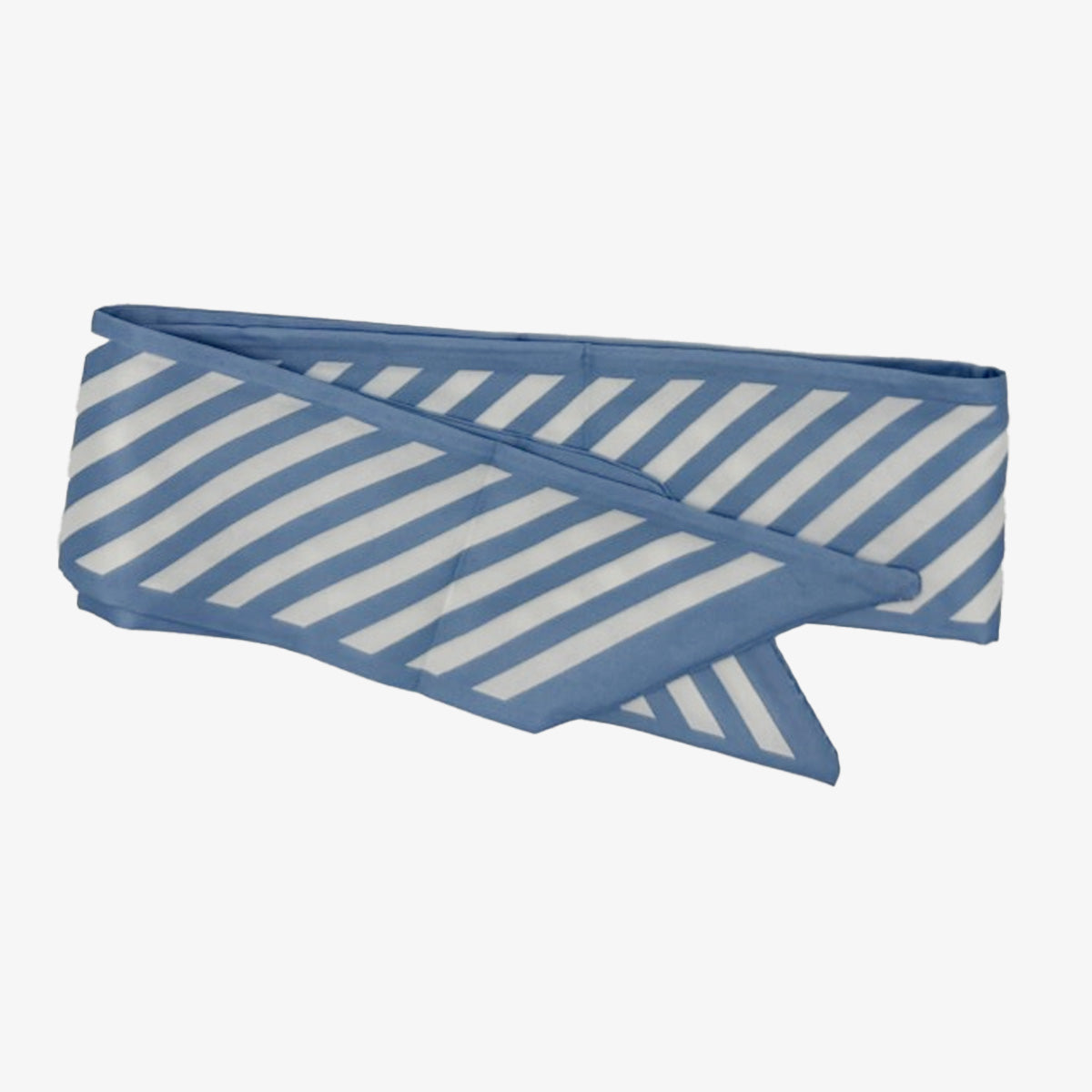 The Light Blue and White Striped Narrow Silky Scarf can double as a necklace with a charm or be tied to your handbag. It’s great for gently brightening your look while giving you a little extra inspiration throughout the day.