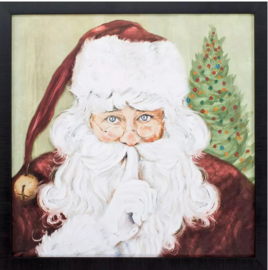 • Capture the magic of the season with this whimsical Santa with Christmas Tree framed print. Featuring Santa with a finger to his lips, it invites a sense of playful secrecy and holiday wonder. Perfect for adding a warm, festive touch to your home, this charming artwork encourages joyful moments and cherished memories throughout the holidays.
