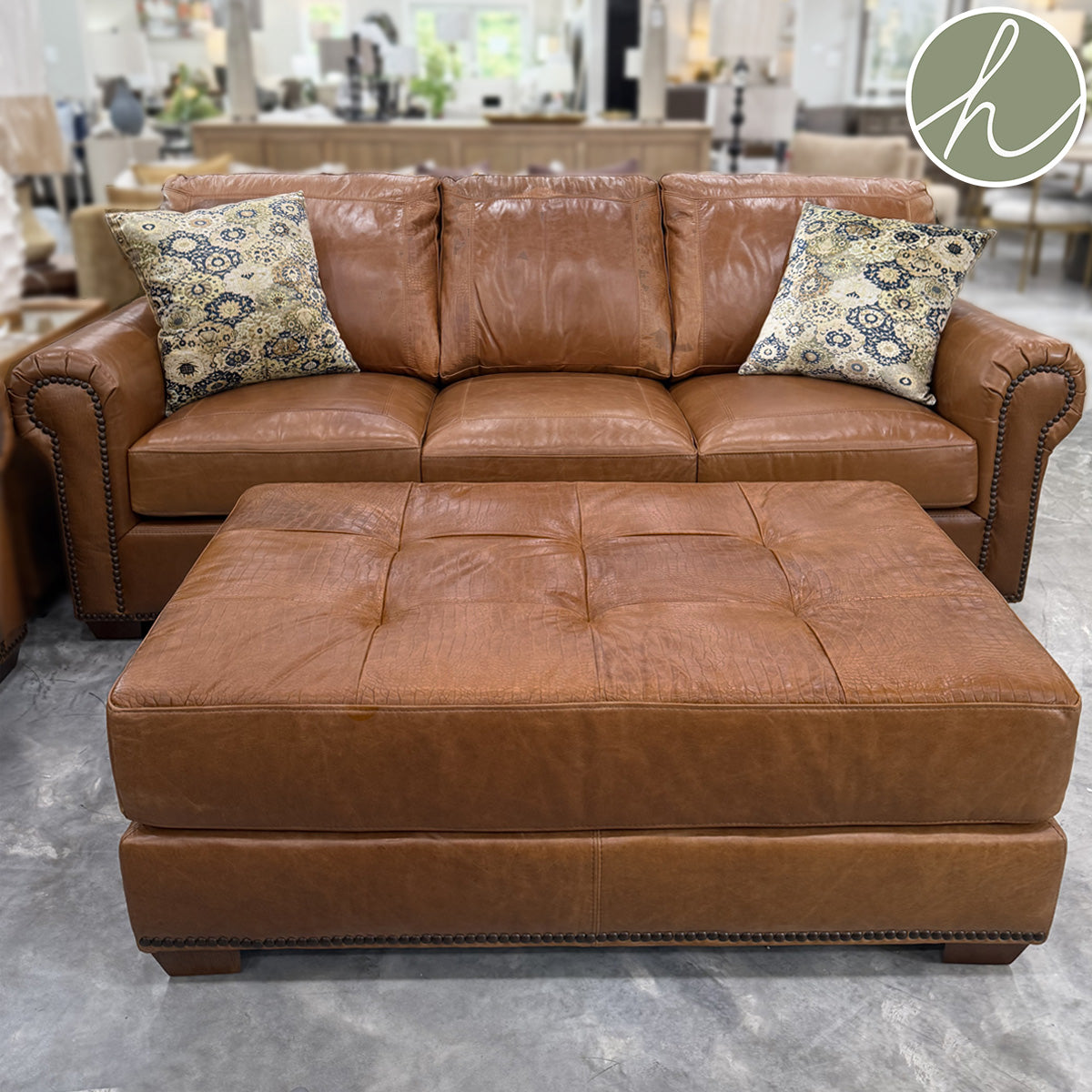 Elevate your living space with our USA Premium Leather Saddle Glove Ottoman in a rich camel color. This substantial piece combines luxurious comfort with timeless appeal, featuring buttery-soft leather that develops a beautiful patina over time. Expertly crafted for both durability and elegance, it serves as the perfect footrest, extra seat, or stylish accent to complete your home's décor.